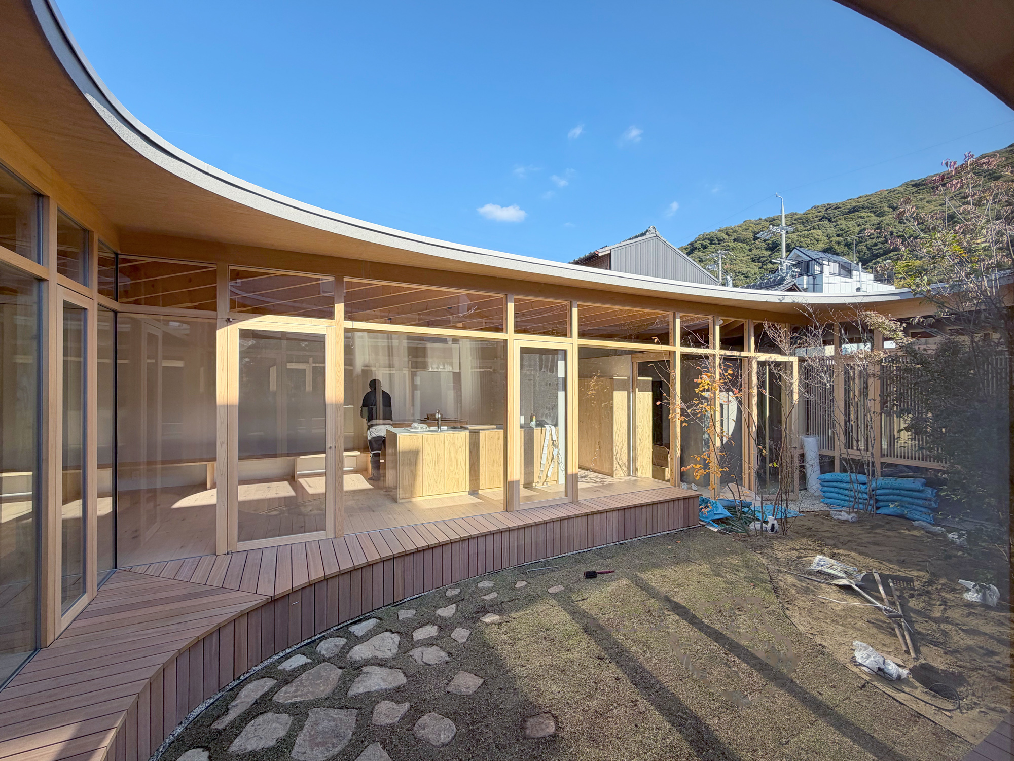 町家という直線的な構成をわつなぎにすることで、異なる機能を持つ空間同士が融和しながら共存し、「暮らすこと」と「働くこと」がより密接になる建物を目指した。